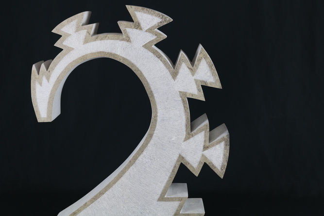 The inspiration behind this piece, 'Creation', comes from our Navajo rug weavers. This design is one of many you will see in our traditional rugs and artwork. The design starts to take shape at the point and growes as it spirals out. The texture in the middle is meant to look like strands of wool. This piece is the beginning to many ideas I will expand upon in the future, a series inspired by Diné origin stories and my great-grandmother, Tiana. My great-grandmother was a rug weaver, and I have many fond memories growing up watching her weave on her loom. The curve of this piece is also meant to look like a heart which expresses the love I have for my grandma and our Navajo rug weavers.